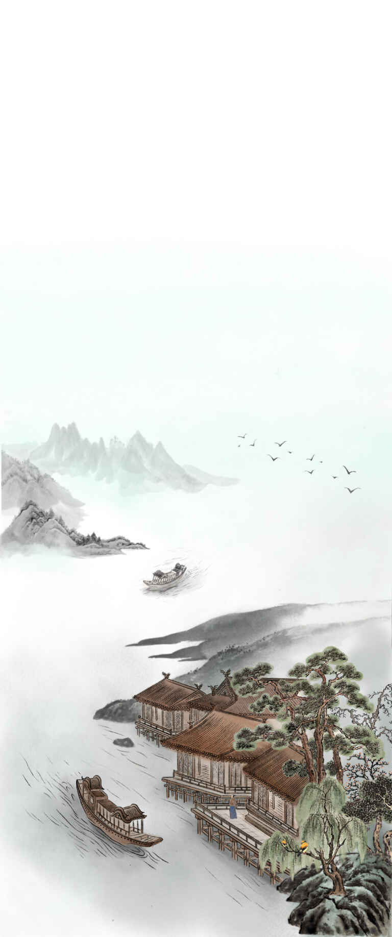 In a jade-green willow tree
